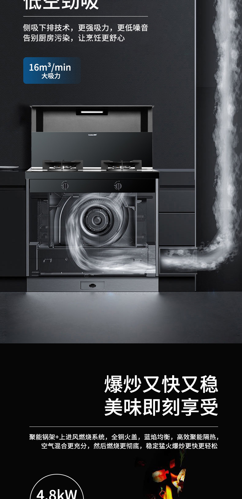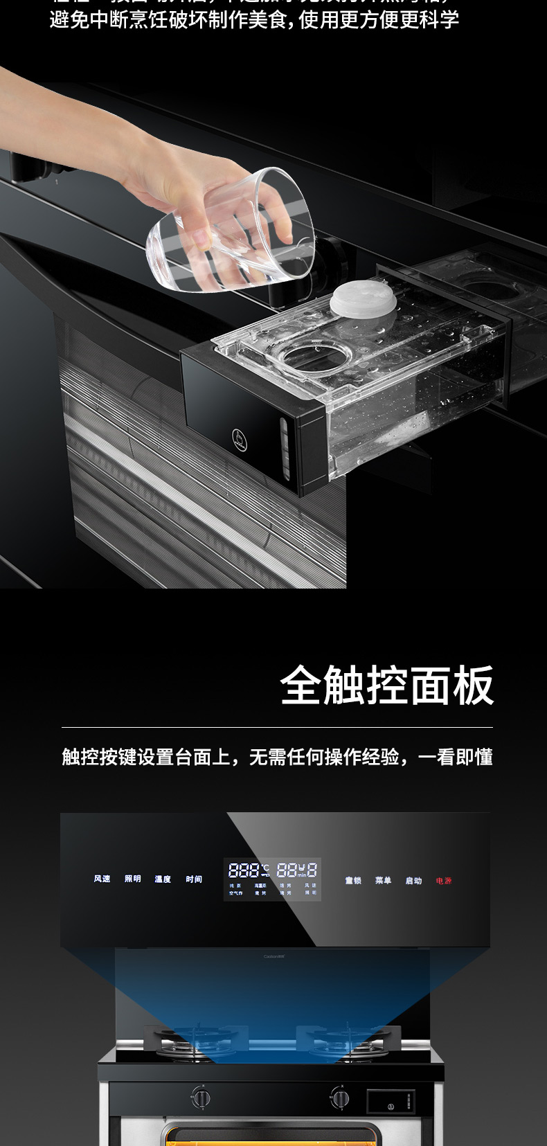 集成科技五合一,60L大容量蒸烤箱,蒸烤炸一體,臺面觸控省時省力
